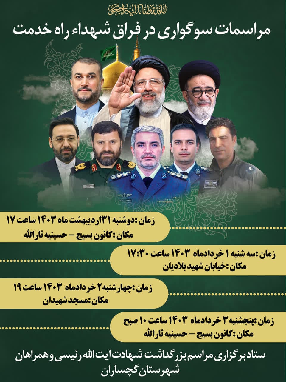 چهار برنامه محوری بزرگداشت آیت الله رئیسی در گچساران اعلام شد