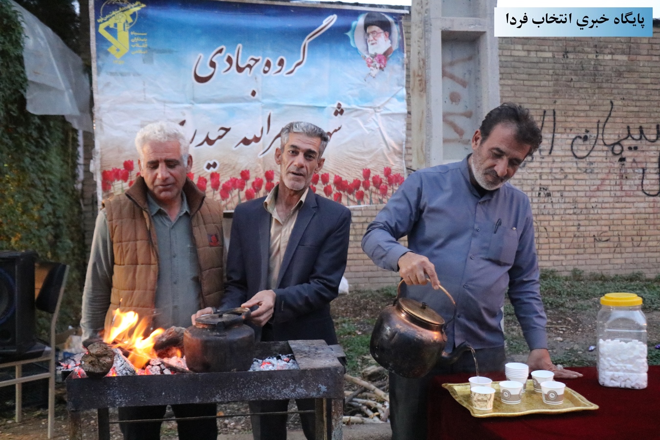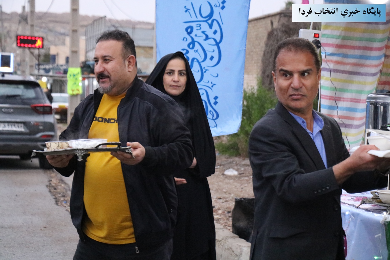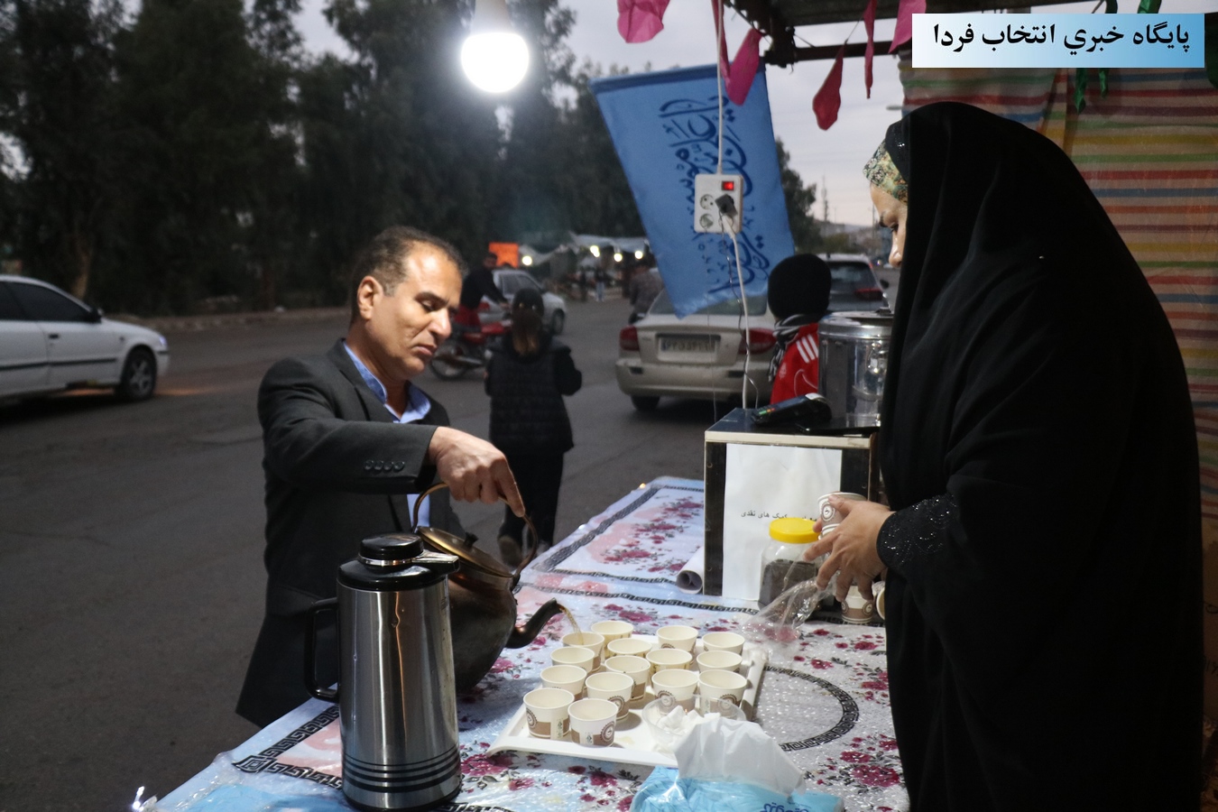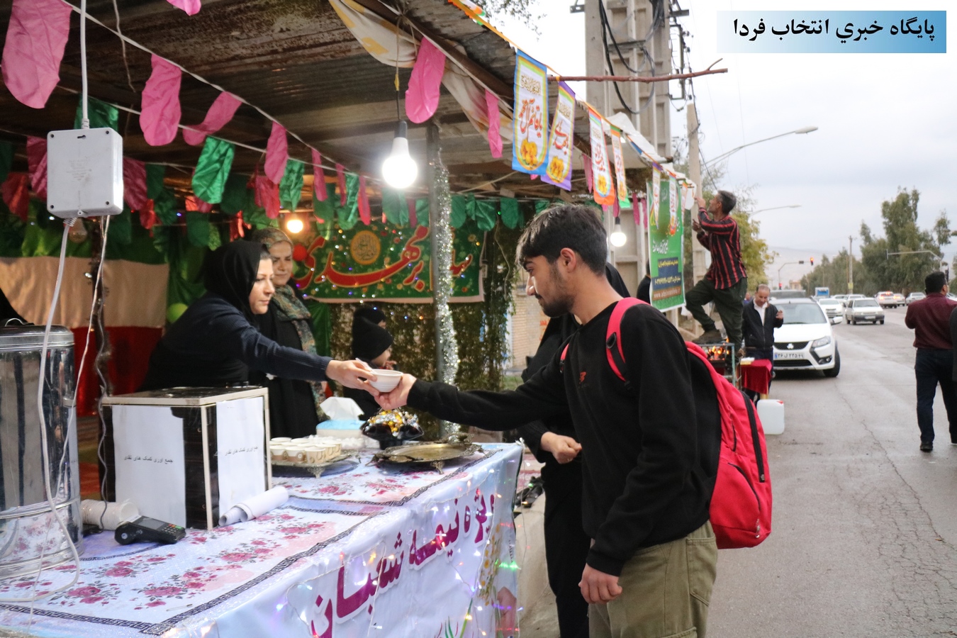 انتخاب فردا-خیریه آبشار عاطفه ها با همکاری گروه جهادی شهید امراله حیدری به مناسبت ولادت باسعادت منجی عالم بشریت حضرت بقیه الله الاعظم مهدی موعود عجل الله تعالی فرجه الشریف موکبی در حاشیه بازار روز راه اندازی کردند، این موکب با چای، غذای گرم، و شیرینی از میهمانان پذیرایی کرد.