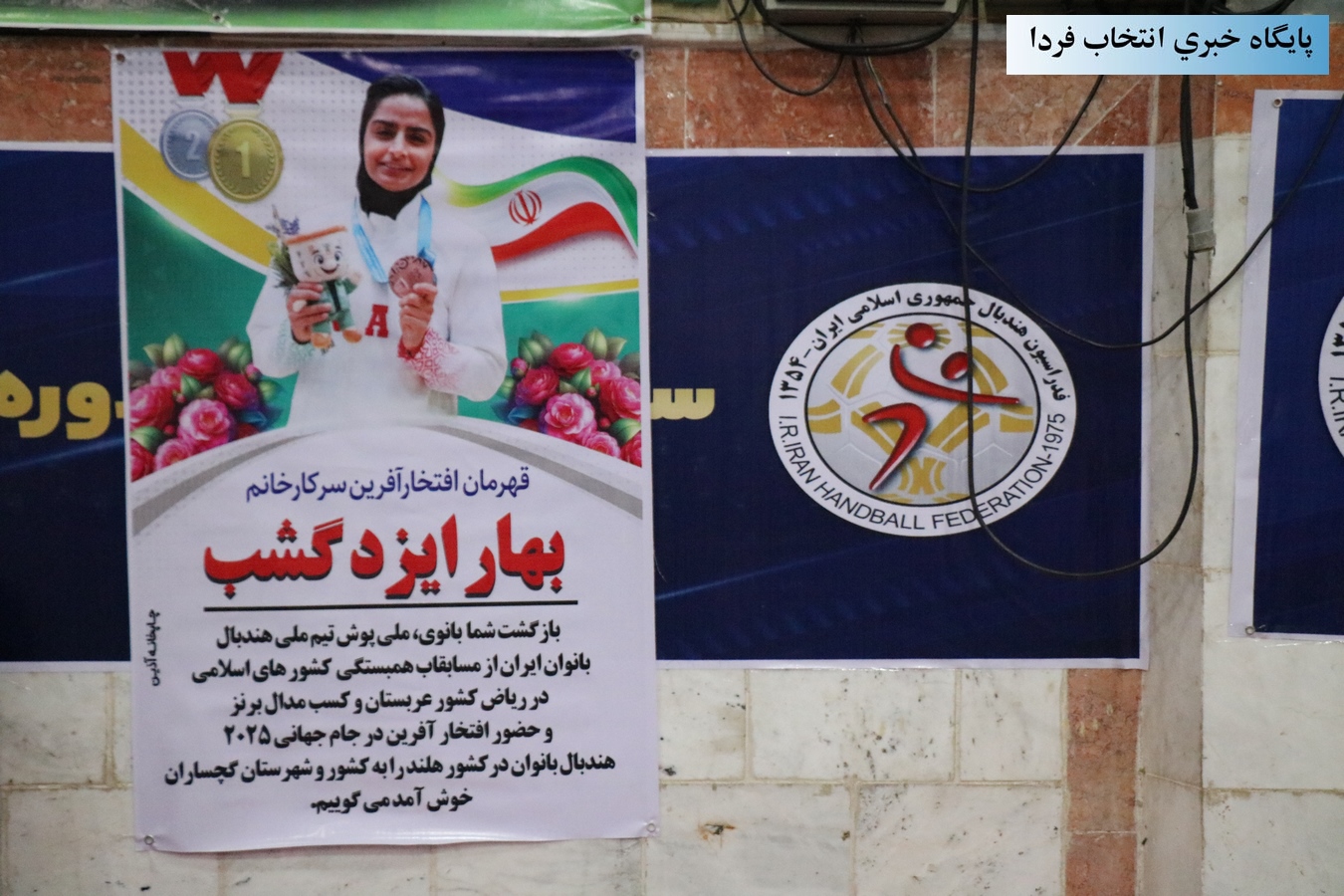 به گزارش انتخاب فردا، استقبال از قهرمان افتخارآفرین بهار ایزدگشب بانوی ملی پوش تیم ملی هندبال بانوان ایران پس از کسب مدال برنز در مسابقات همبستگی کشورهای اسلامی در ریاض کشور عربستان و حضور افتخار آفرین در جام جهانی ۲۰۲۵ هندبال بانوان در کشور هلند شامگاه شنبه ۲۲آذر ۱۴۰۴ در محل سالن ورزشی پدخندق گچساران برگزارشد.