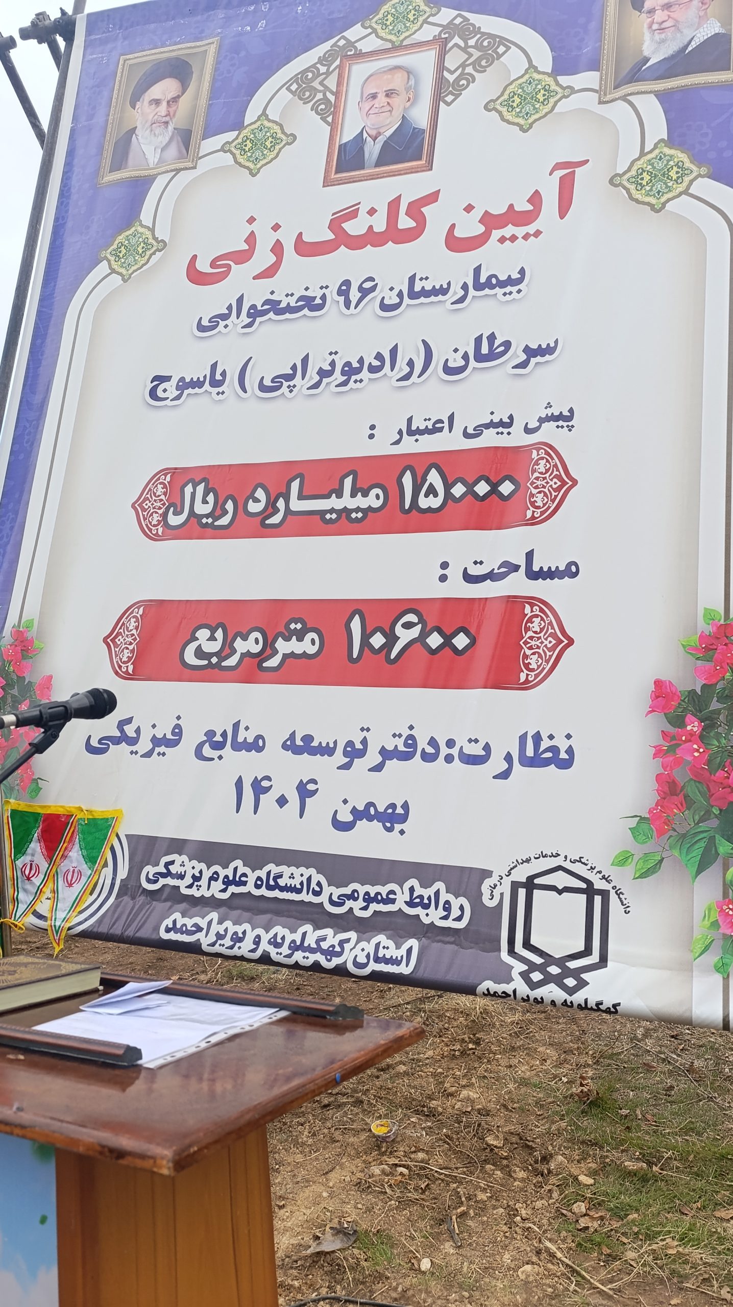 کلنگ امید برای بیماران سرطانی کهگیلویه و بویراحمد به زمین زده شد/ آغاز ساخت بیمارستان ۹۶ تختخوابی رادیوتراپی یاسوج با اعتباری ۱.۵ همتی